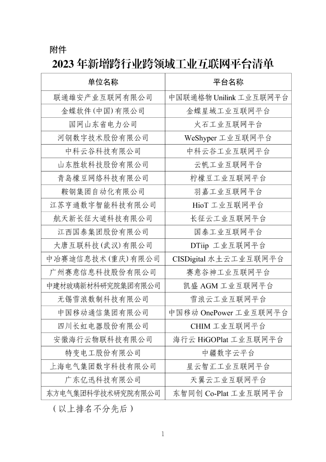 附件:2023年新增跨行業跨領域工業互聯網平臺清單
