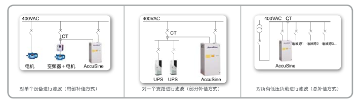 根據AccuSine有源濾波器補償對象的不同,AccuSine有源濾波器的補償方式有局部補償、部分補償、總補償三種方式。