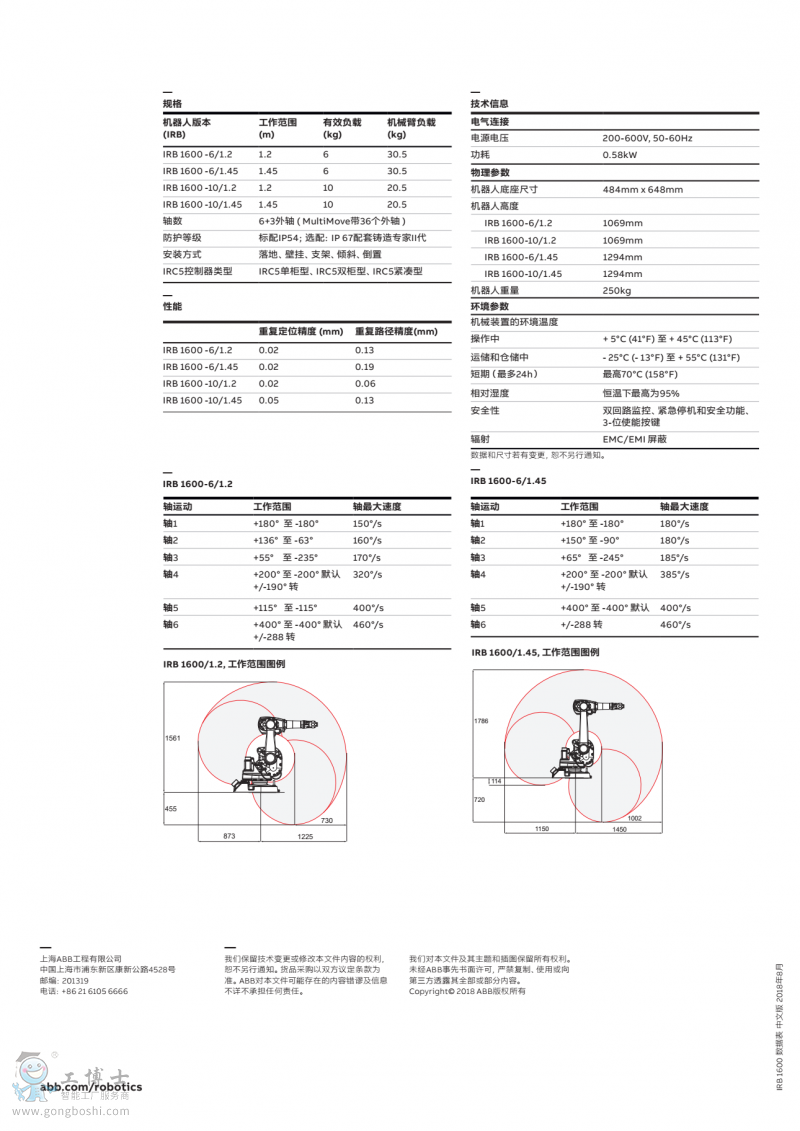 ABB機器人IRB1600-6/1.45產品|技術手冊
