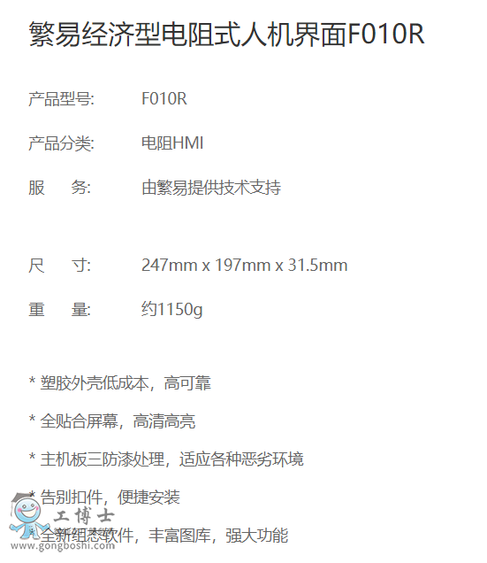 繁易(FBox)電阻式觸摸屏F010R|產品資料