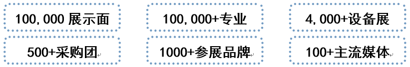 90,000+㎡;1000+參展商 4000+設備;90,000+采購商 500+采購團;100+媒體 |