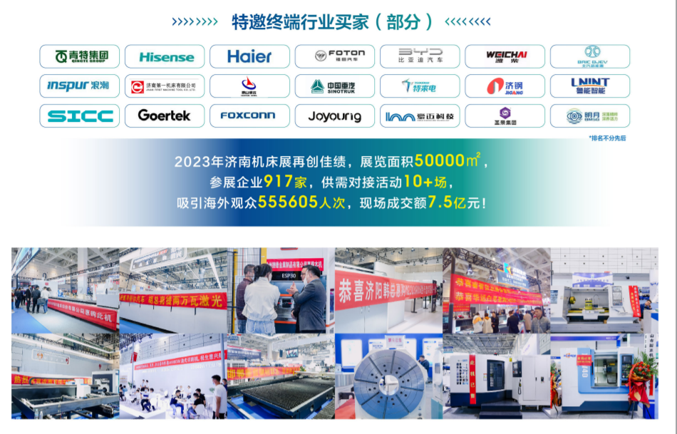 2023年濟(jì)南機(jī)床展再創(chuàng)佳績,展覽面積50000㎡,參展企業(yè)917家,供需對接活動(dòng)10+場,吸引海外觀眾555605人次,現(xiàn)場成交額7.5億元!