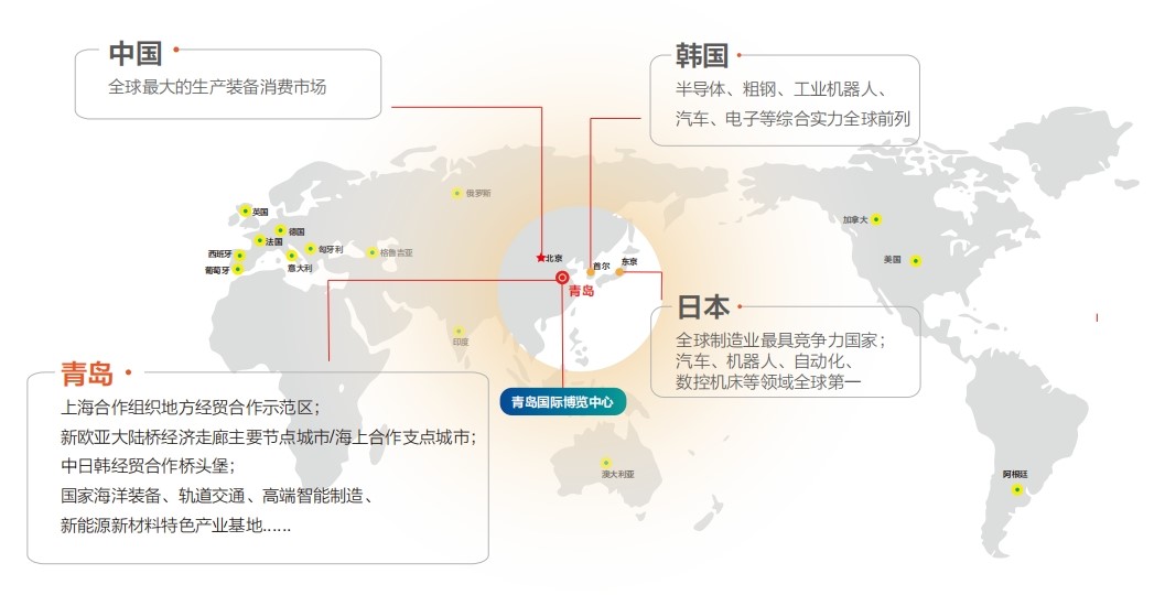 青島:上海合作組織地方經貿合作示范區;新歐亞大陸橋經濟走廊主要節點城市/海上合作支點城市;中日韓經貿合作橋頭堡;國家海洋裝備、軌道交通、高端智能制造、新能源新材料特色產業基地......