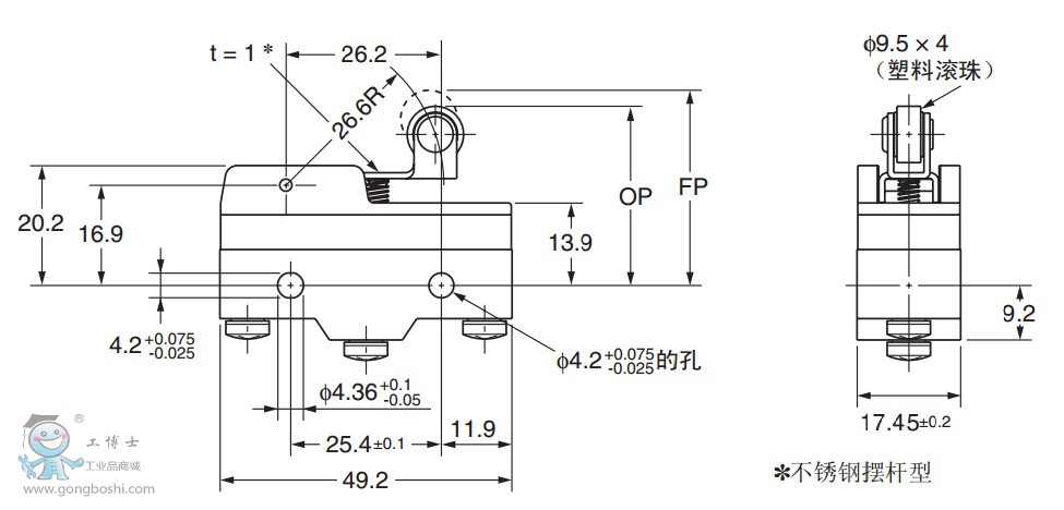 歐姆龍(進(jìn)口)Z-15GW-B  微動(dòng)開關(guān)15A 1開1閉 擺桿驅(qū)動(dòng)