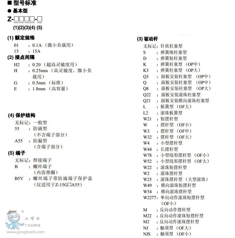 歐姆龍(進(jìn)口)Z-15GW-B 微動(dòng)開關(guān)15A 1開1閉 擺桿驅(qū)動(dòng)