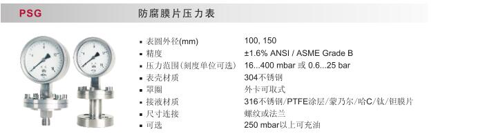 文特斯防腐膜片壓力表PSG