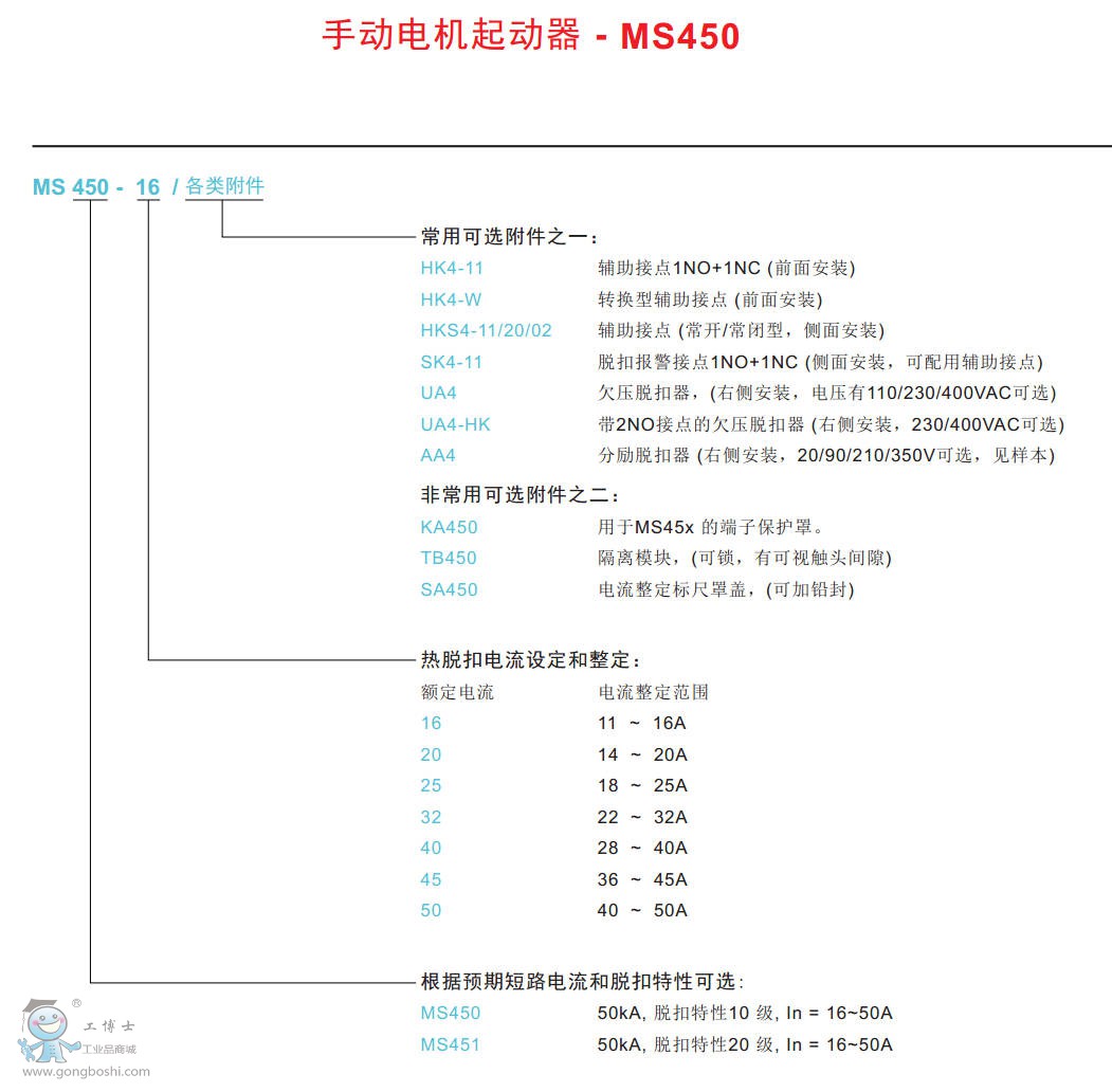 ABB的MS全系列電動機(jī)起動器,額定電流由0 1至100A。可對電機(jī)和線路