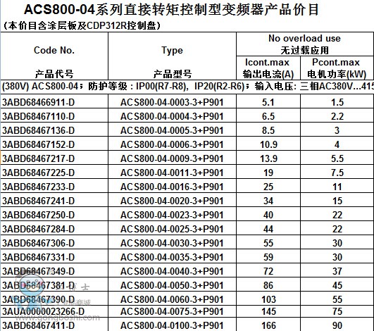 45KW變頻器abb變頻器ACS800-01-0050-3+P901免費開增票保證