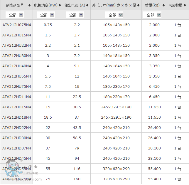 施耐德 變頻器ATV212HD75N4 75KW
