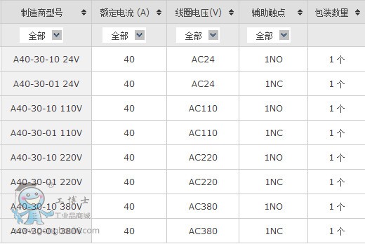 ABB接觸器 A40-30-01 40A接觸器 線圈電壓 AC110v/220v/380V