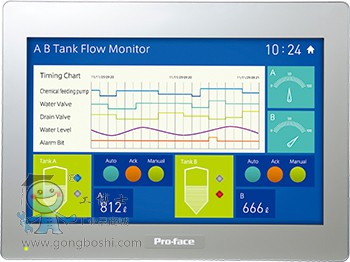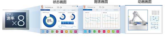 CPU速率是Pro-face以往人機(jī)界面產(chǎn)品的8倍。即使在畫面上增加更多的信息,也可以流暢的顯示。例如,需要高速處理的運(yùn)動(dòng)、位置信息及大量配方,可使用動(dòng)畫來逼真地顯示設(shè)備狀態(tài),還可清晰顯示流程圖和其他詳細(xì)信息。
