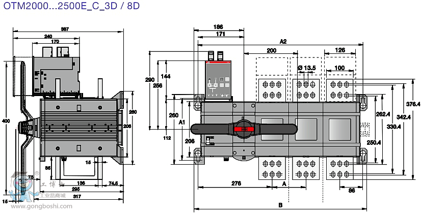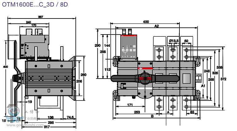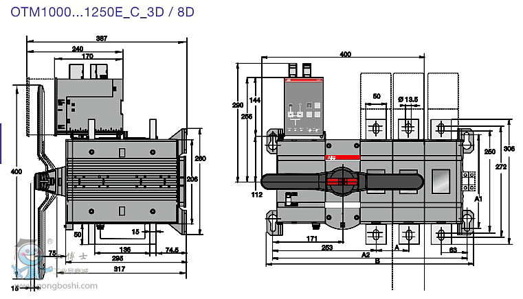 ABB雙電源轉(zhuǎn)換開(kāi)關(guān) 3極 230V OTM160E3CM230C