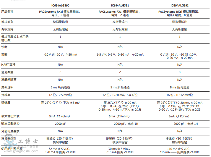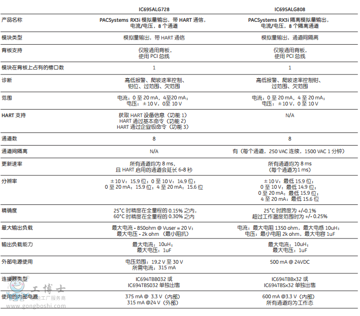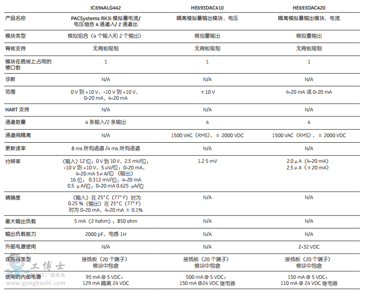 模擬量模塊規格:
