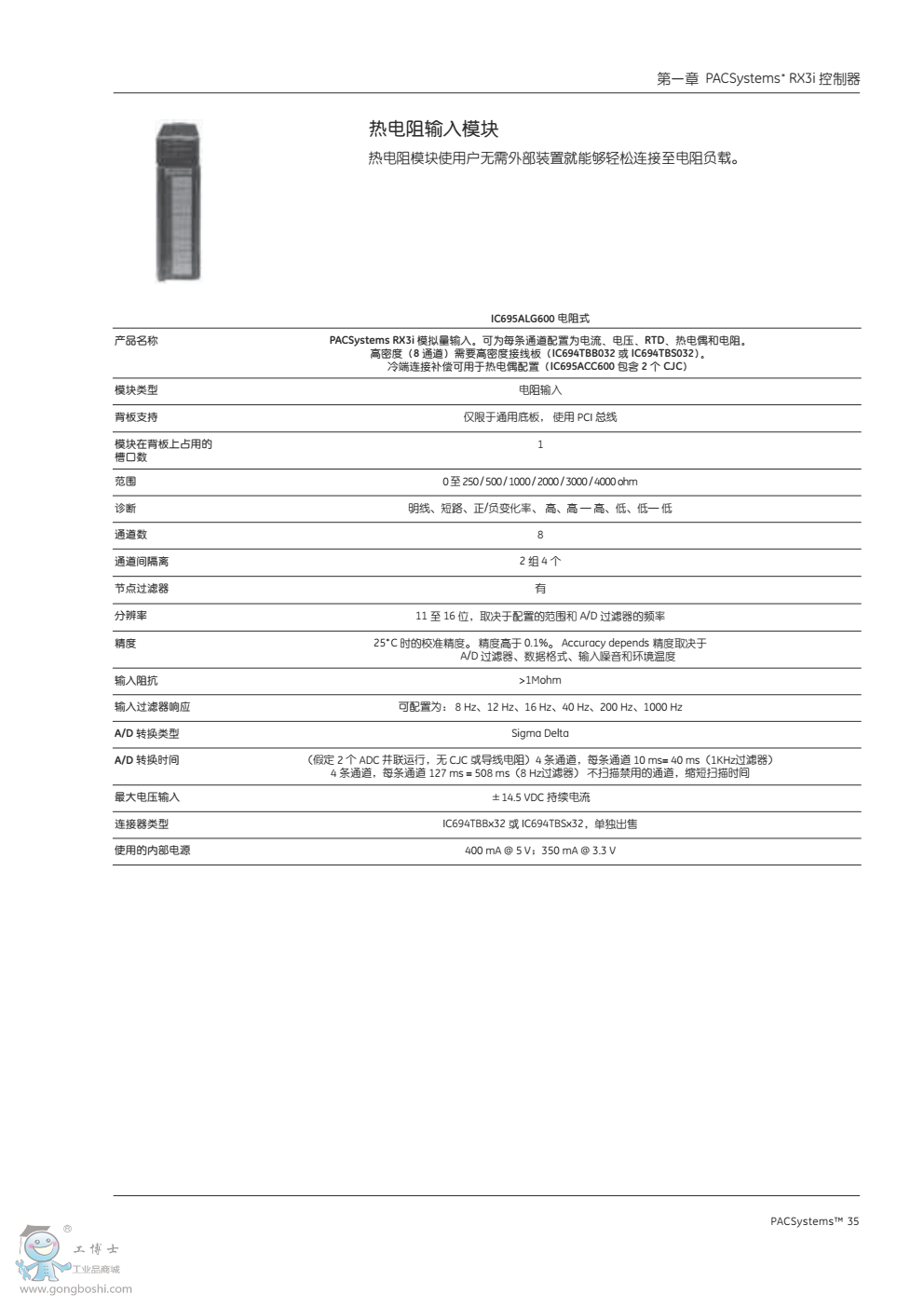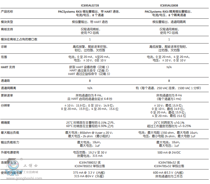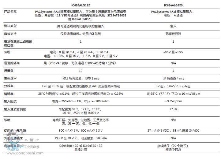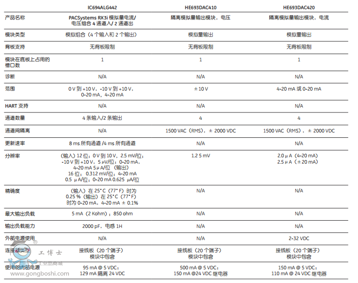 模擬量模塊規格: