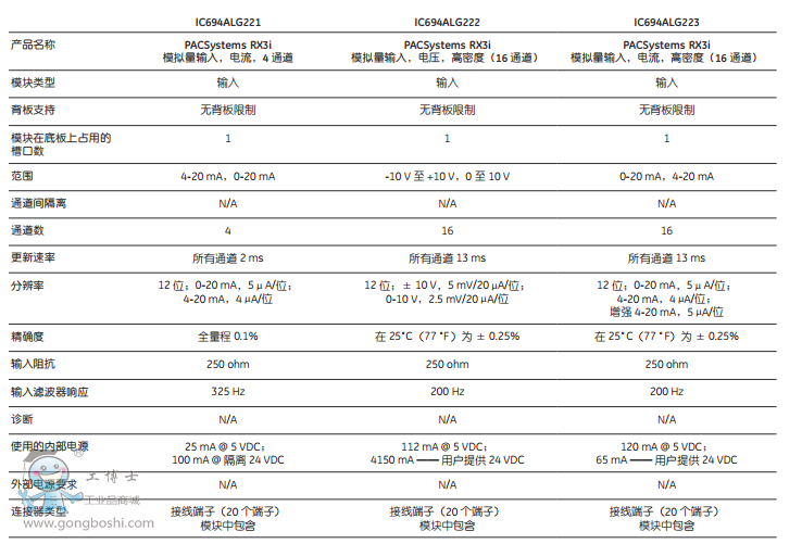 模擬量模塊規(guī)格: