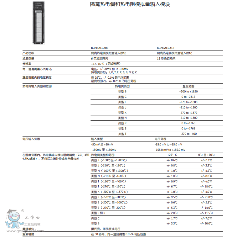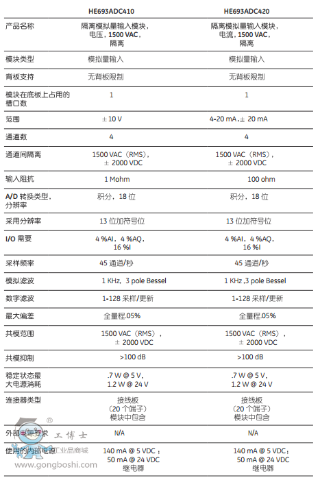 模擬量模塊規格: