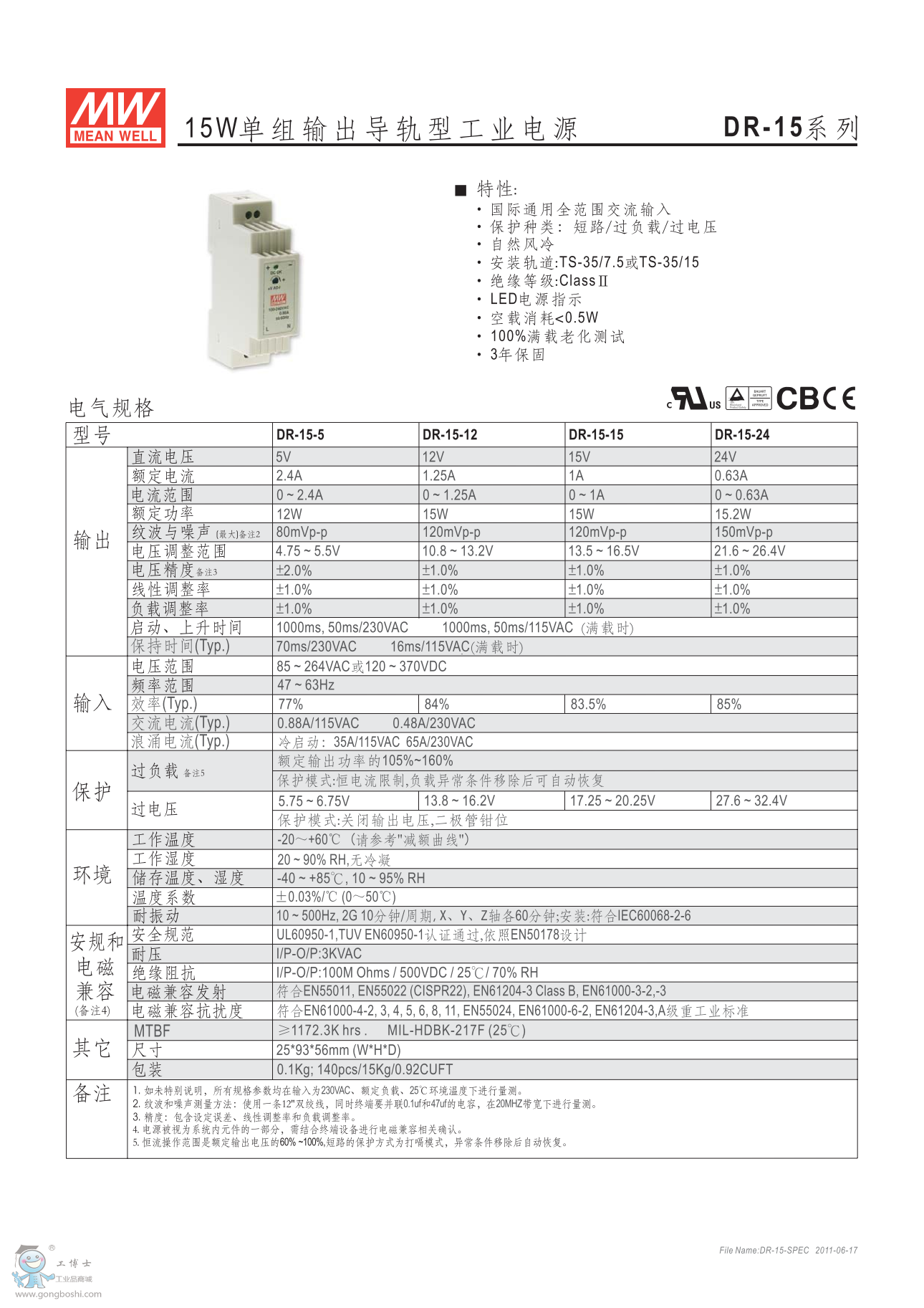 明緯導(dǎo)軌式工業(yè)電源DR系列產(chǎn)品說(shuō)明書: