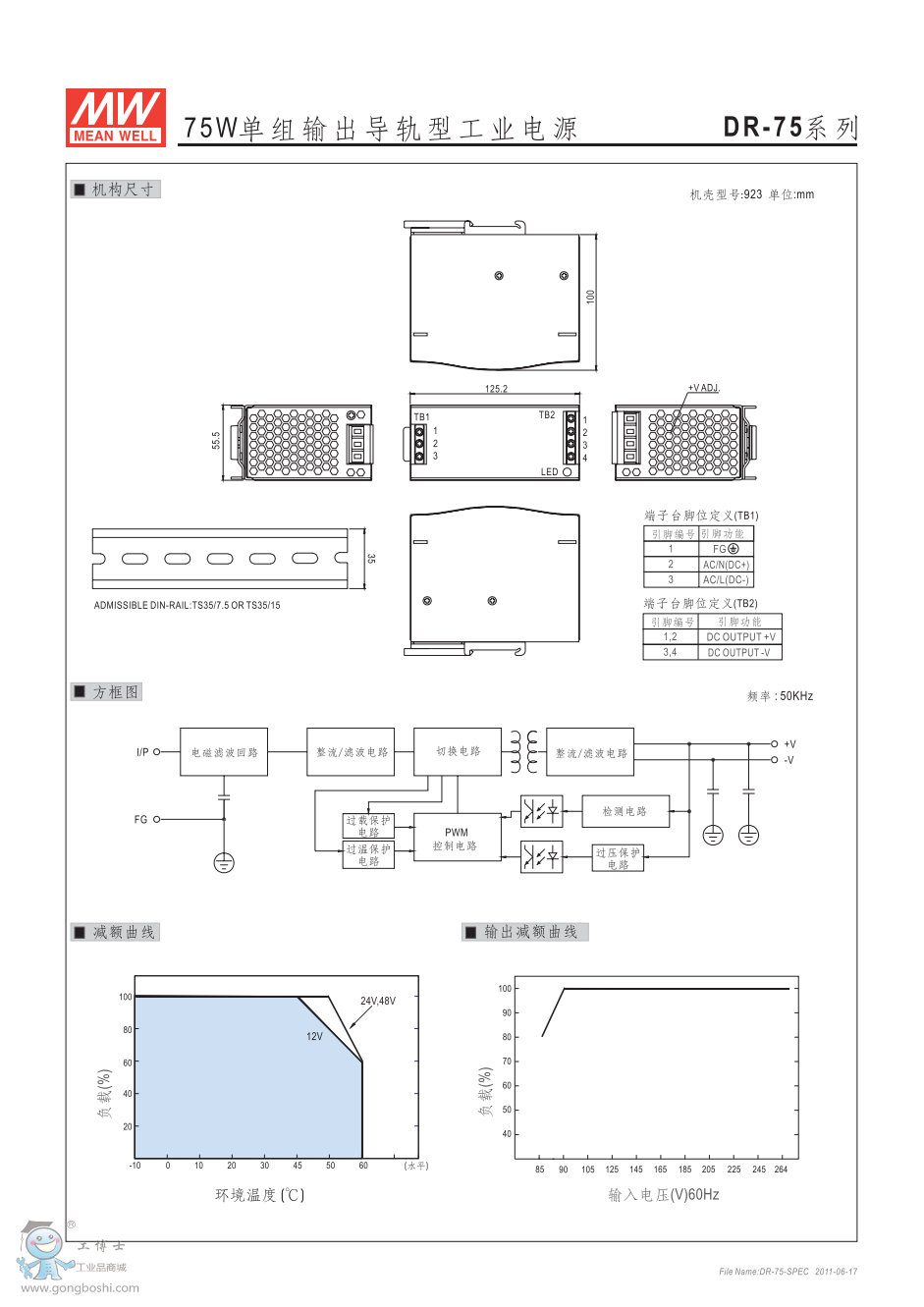 明緯導軌電源DR-75-24 75W單組輸出電源