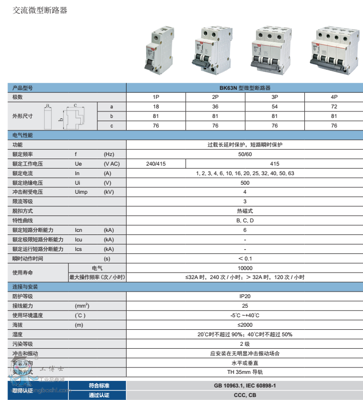 可選極數1P|2P|3P|4P 可選額定電流1A|2A|3A|4A|6A|10A|16A|20A|25A|32A|40A|50A|63A