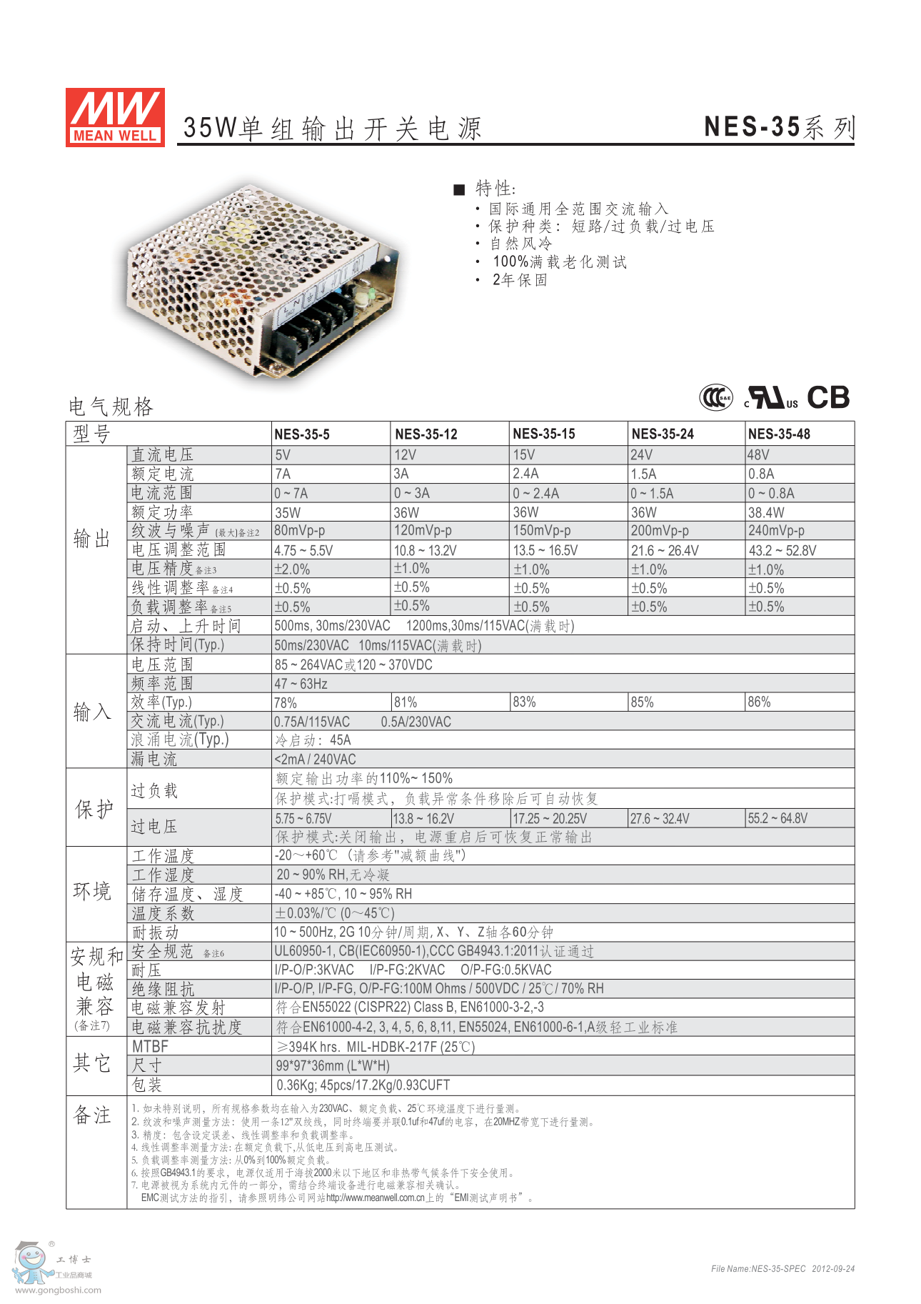明緯開關電源NES-35-48 經濟網殼型48V
