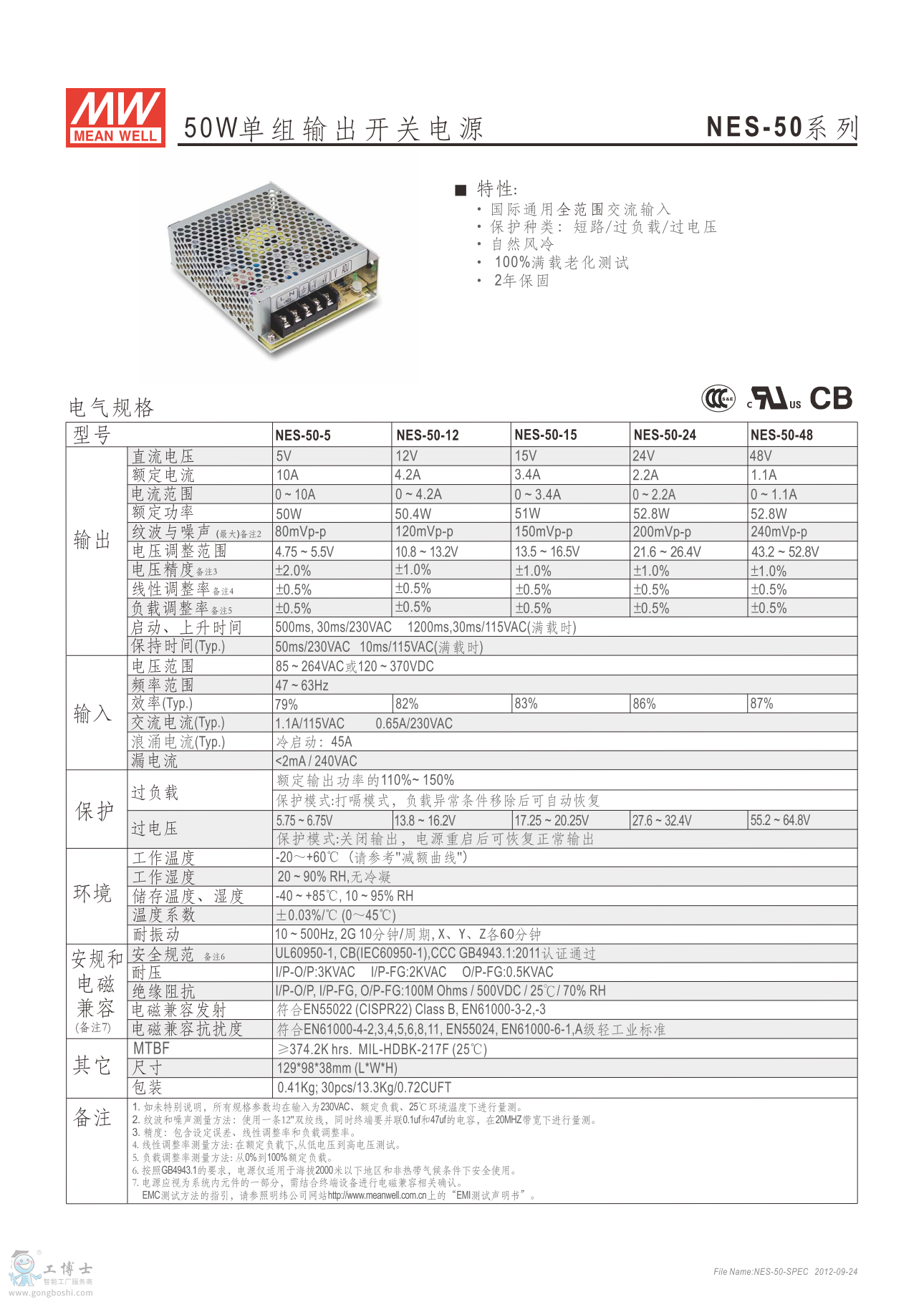 明緯開關電源NES-50-24 經濟網殼型24V