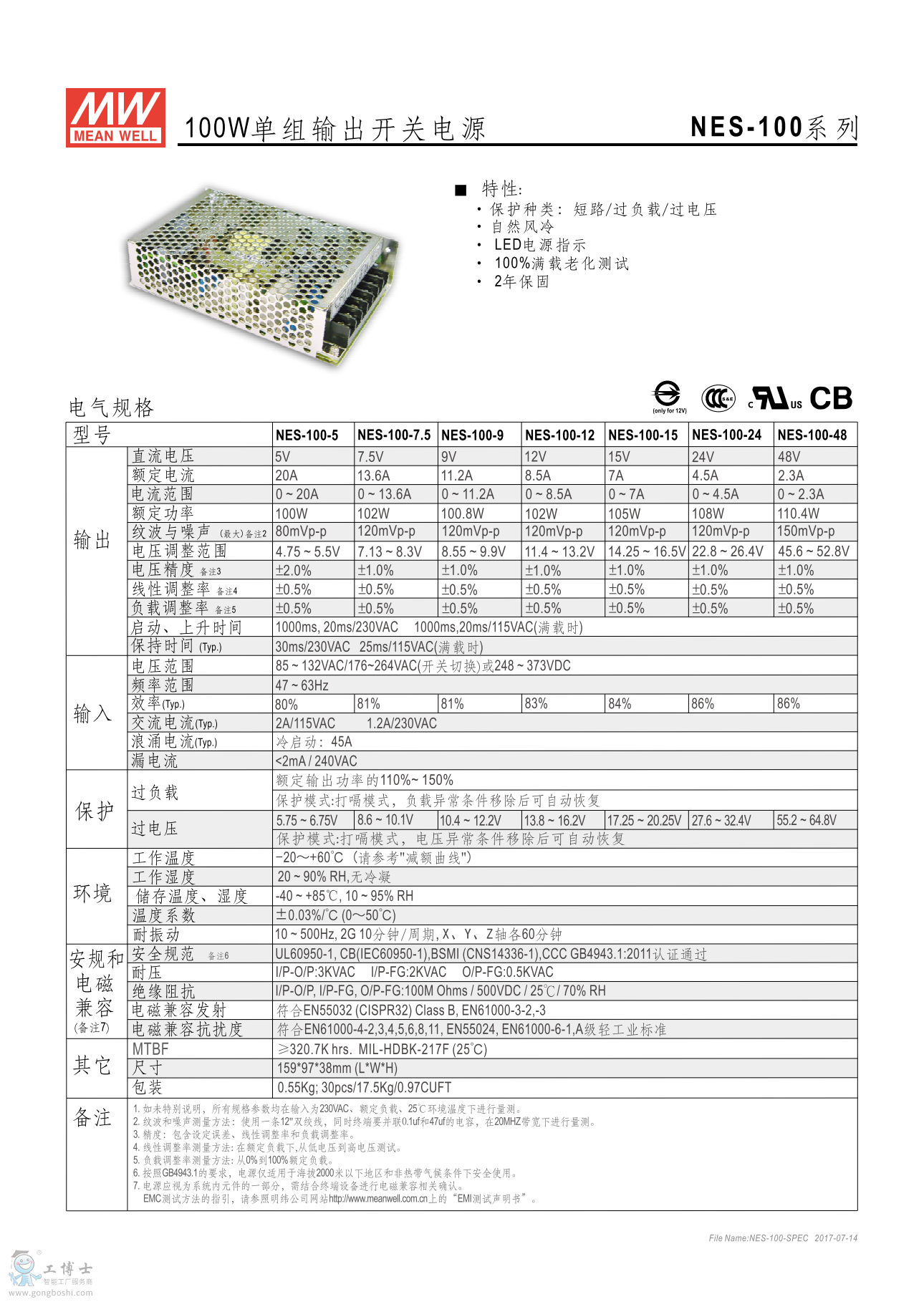 明緯開關電源NES-100-7.5 經濟網殼型7.5V