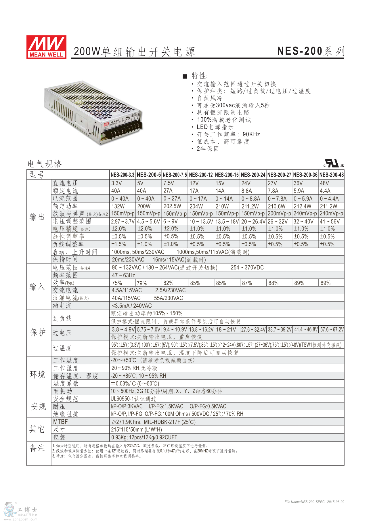 明緯開關電源NES-200-12 12V17A