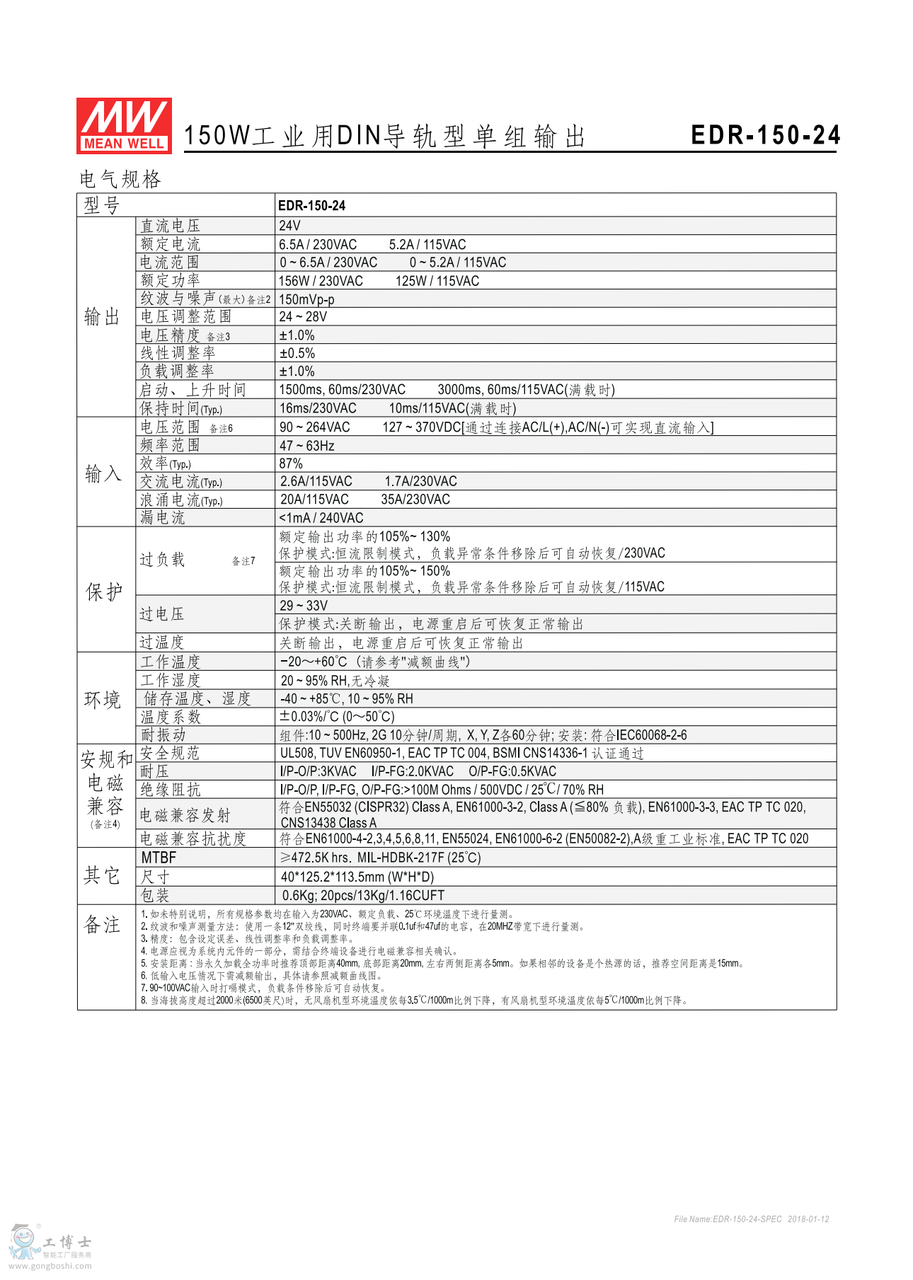明緯開關電源EDR-150-24 24V
