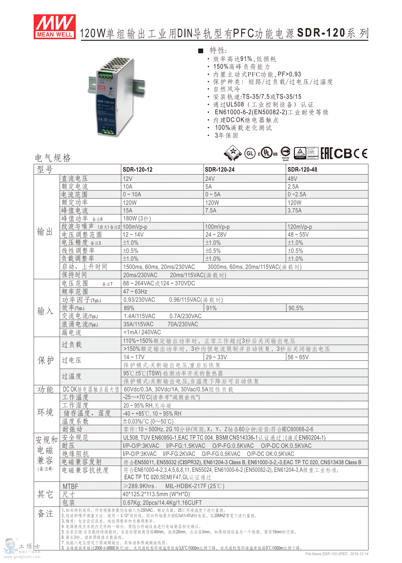 內建主動式功率因子矯正功能(active PFC) (SDR-75除外)