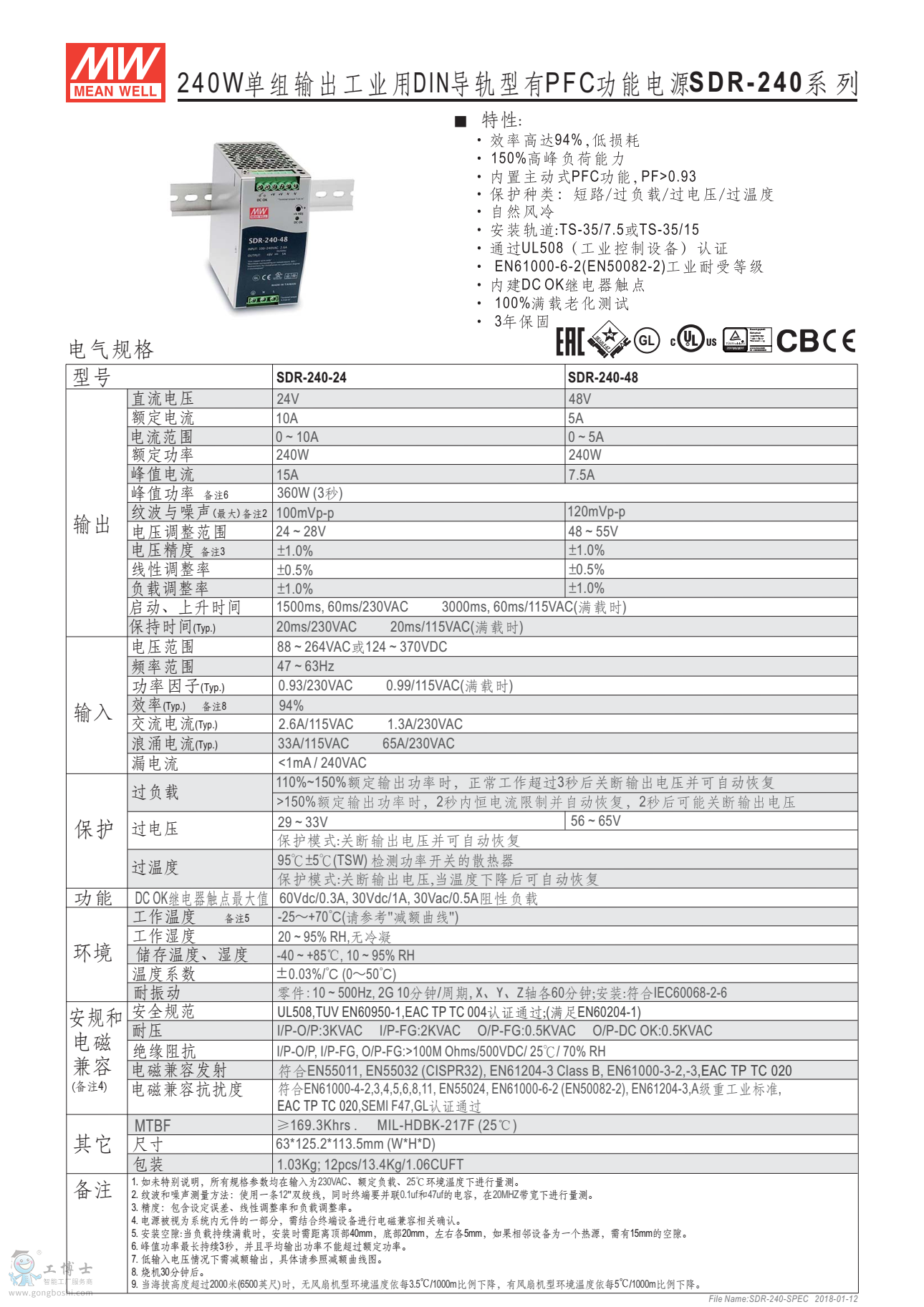 內(nèi)建主動式功率因子矯正功能(active PFC) (SDR-75除外)