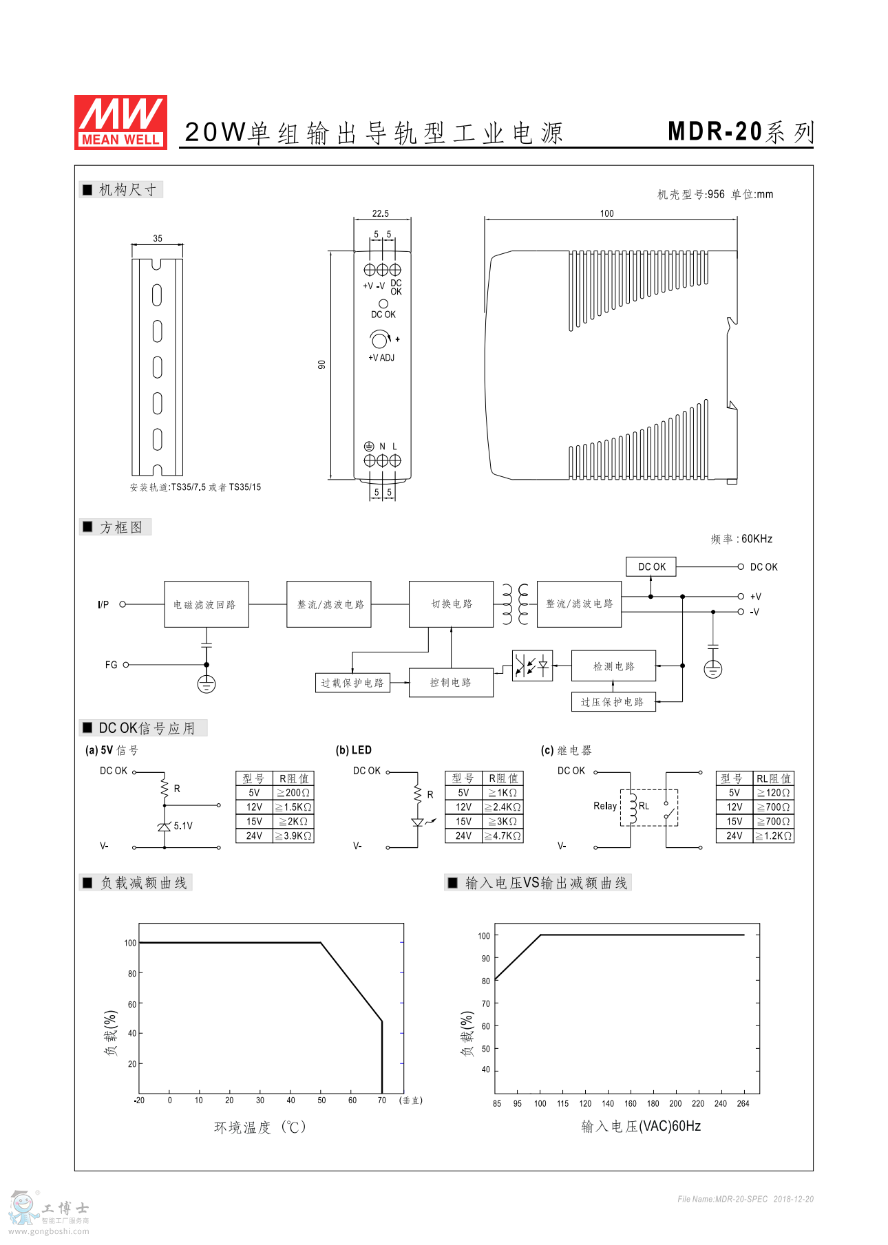 DC OK繼電器接點(relay contact)信號輸出(MDR-40/60/100)