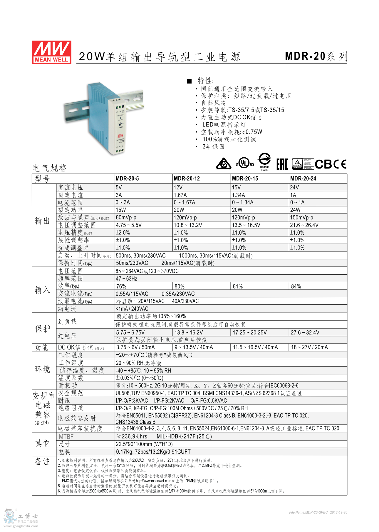 適合安裝于DIN rail TS-35 / 7.5 或 15
