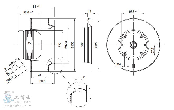 離心風機將空氣沿著電機軸向吸入,并沿著電機徑向排出。離心風機的特點是壓力升高快,這主要依賴于葉輪的寬度、空氣性能特性和適當的大流量。空氣流量符合相似定律,在壓力相同和流速恒定的條件下,流量隨著葉輪寬度的增長成線形變化。