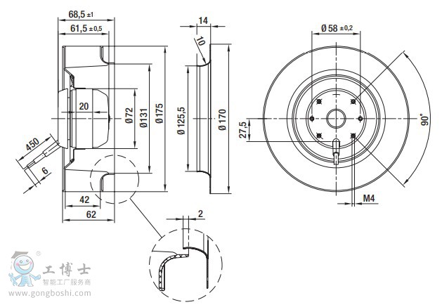離心風機將空氣沿著電機軸向吸入,并沿著電機徑向排出。離心風機的特點是壓力升高快,這主要依賴于葉輪的寬度、空氣性能特性和適當的大流量。空氣流量符合相似定律,在壓力相同和流速恒定的條件下,流量隨著葉輪寬度的增長成線形變化。