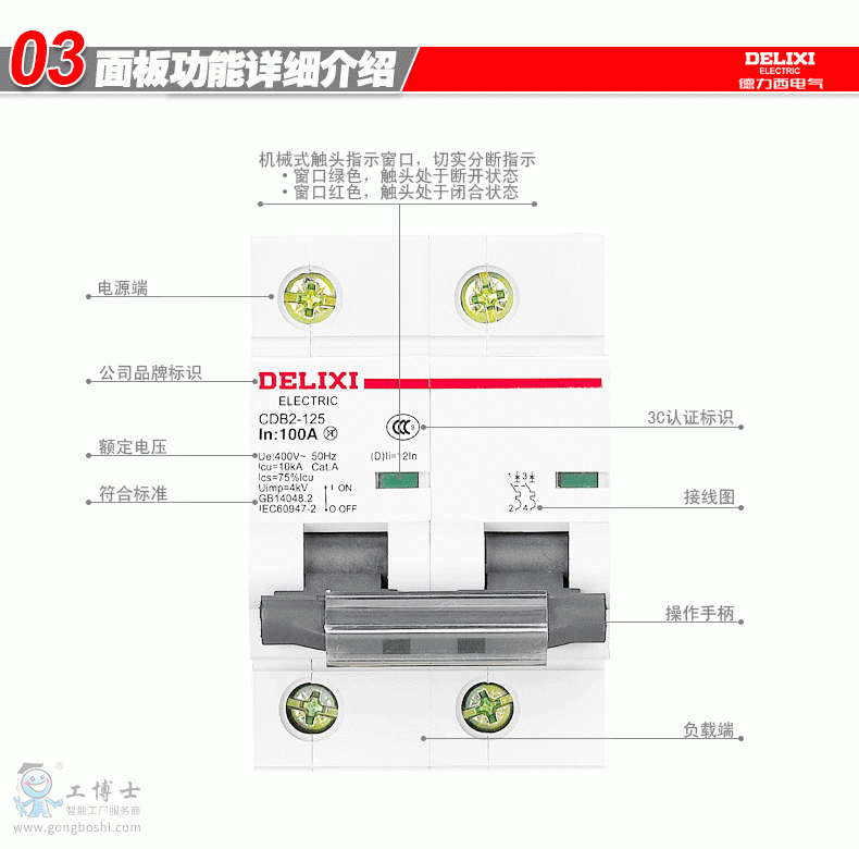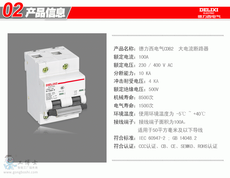 德力西電氣 空氣開關(guān) 大功率家用斷路器 CDB2 2P 100A 二極斷路器