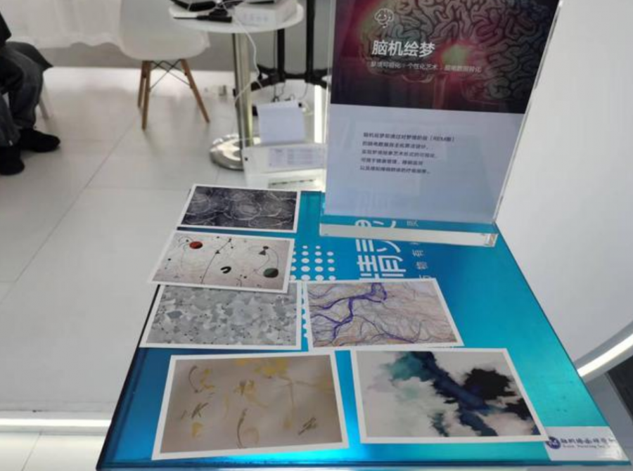 人們常常對自己的夢境所揭示的意義感到好奇,而現在,通過腦機接口,人們的夢境和情緒都得以展現。體驗者戴上腦電設備后,機器會采集大約幾十秒的腦電信號,接著生成一幅繪畫作品,通過這幅“畫作”,便可以對人的情緒做出簡單判斷。