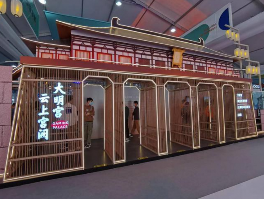 走進“未來之境“展館,首先映入眼簾的便是金碧輝煌的大明宮模型。大明宮是中國建筑史上最為卓越的宮殿建筑群,如今通過數字技術,人們便可以置身其中領略其風采。