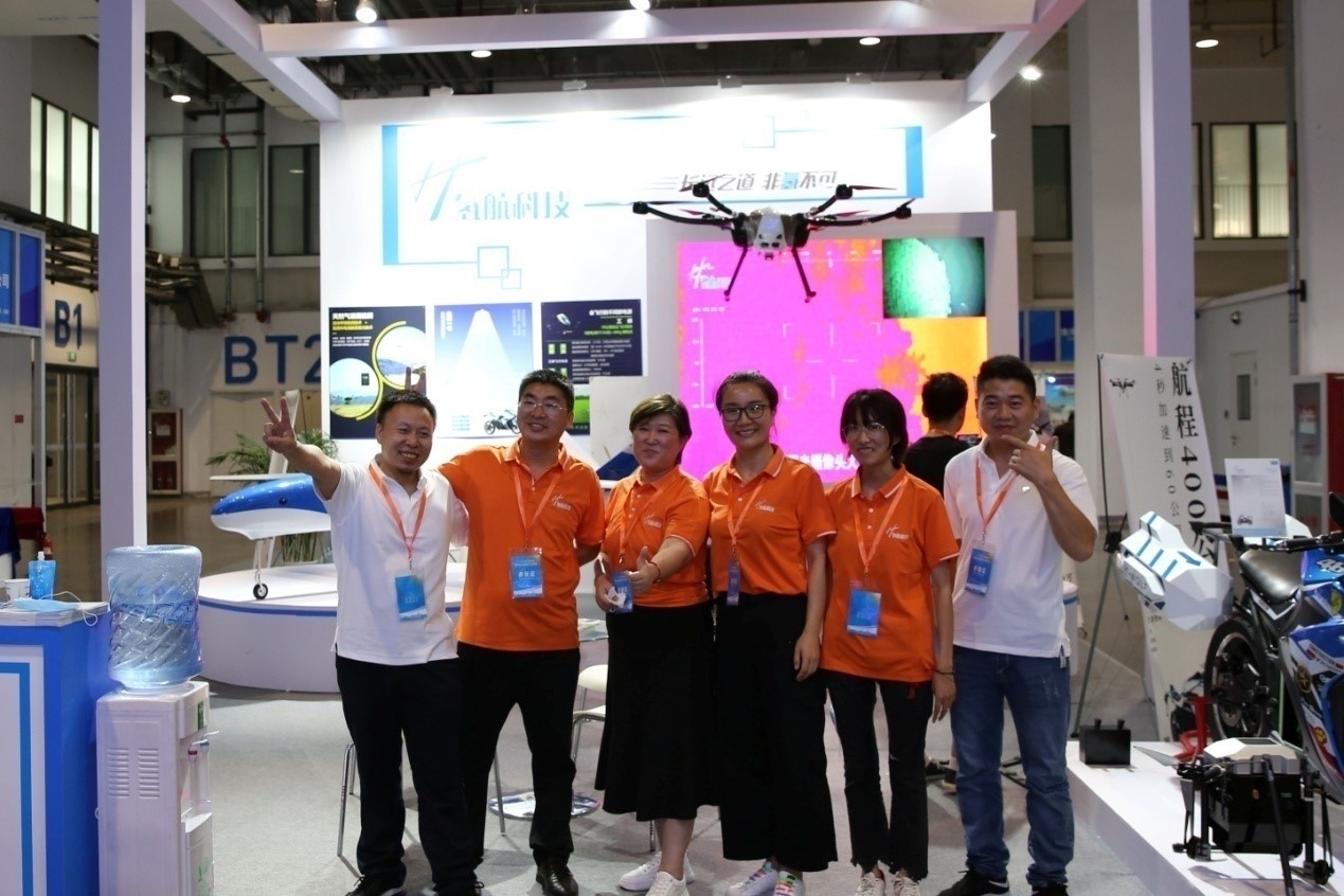 北京國際應急博覽會現場氫航科技公司人員在展臺合影(現場圖)