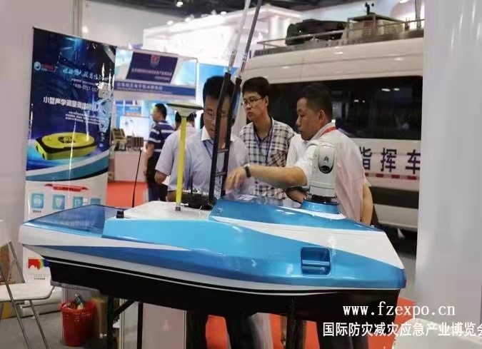 北京國際應急博覽會現場水上無人船亮相吸引專業人士了解(現場圖)