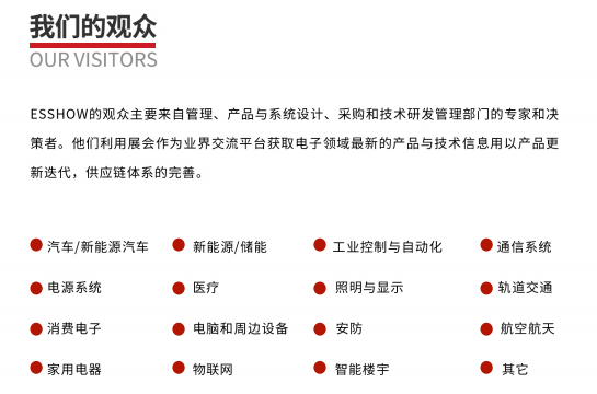 ES SHOW 2023 將與同期展會(huì)觀眾互通,邀請來自國內(nèi)元器件、家電、通信、汽車、半導(dǎo)體、工控、新能源、觸控顯示、醫(yī)療、光電、LED、物聯(lián)網(wǎng)、5G、AR/VR、照明與消費(fèi)、消費(fèi)電子、家電、安防等行業(yè)買家蒞臨,全面呈現(xiàn)從元件到系統(tǒng)、從設(shè)計(jì)到制造的全產(chǎn)業(yè)鏈面貌,共享同期超過10萬名的專業(yè)觀眾。