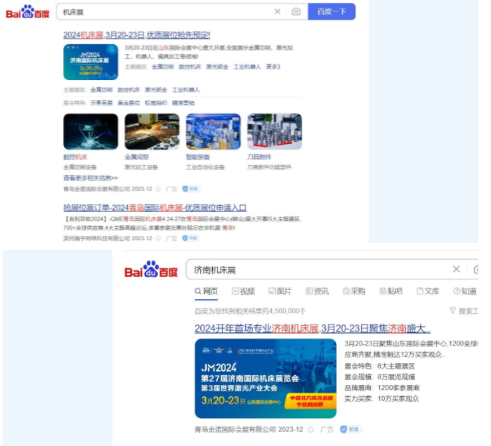 2024濟南國際機床展通過百度營銷投放搜索廣告以及網站關鍵詞快排,全面覆蓋機械工業行業, 讓億萬有需求的買家第一時間看到展會信息,鏈接官方網站全面展示參展商信息和產品內容。