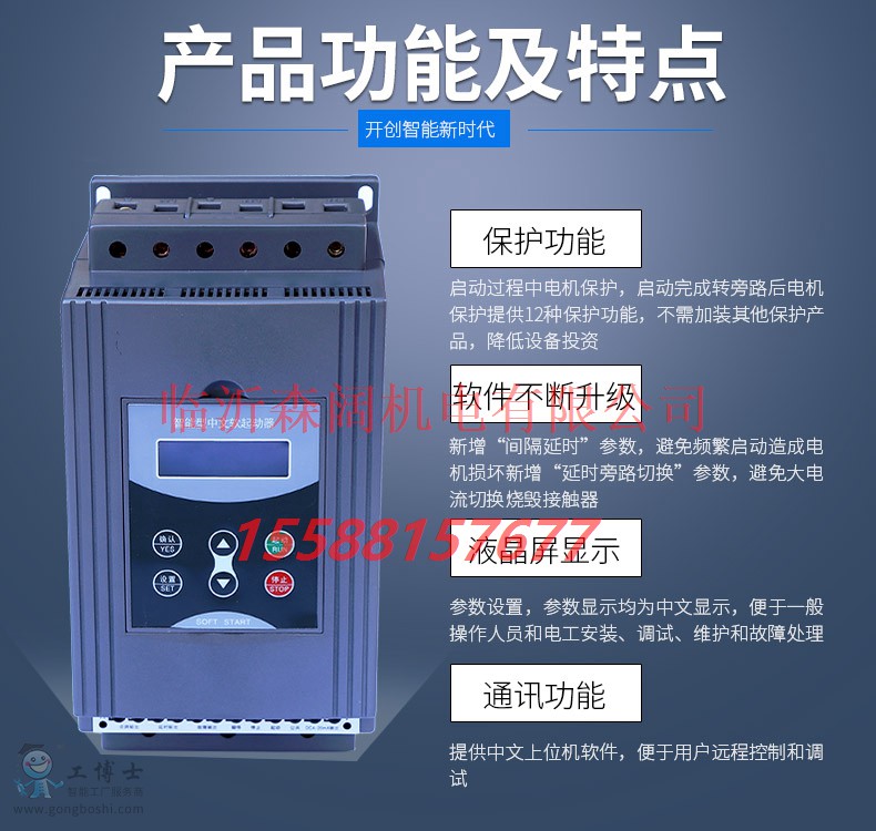 智能型旁路軟啟動器是本公司自主研發的以微處理器為核心,結合可控硅功率驅動、軟硬件保護、菜單式LED顯示、鍵盤操作、轉矩控制及模糊PID閉環算法等技術、集電機軟啟動、軟停車、輕載節能和多種功能為一體,全新打造的具有國際先進水平的智能啟動設備。該設備功能齊全、性能穩定,被廣泛的應用于傳輸類設備、風機、水漿機、壓縮機等負載的啟動過程中。