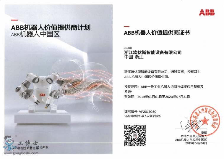ABB機(jī)器人授權(quán)書