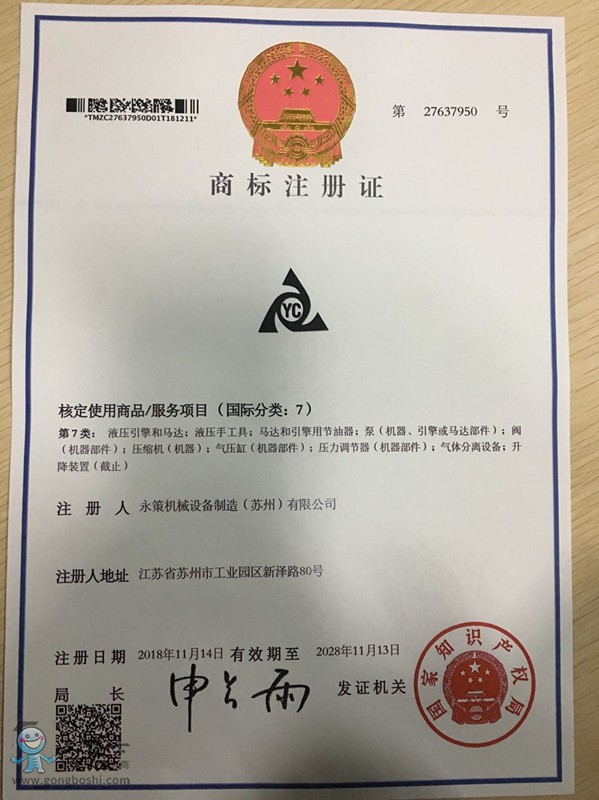 永策機械設備制造(蘇州)有限公司,證書相冊(ECM、ISO、商標、***認證、營業執照)
