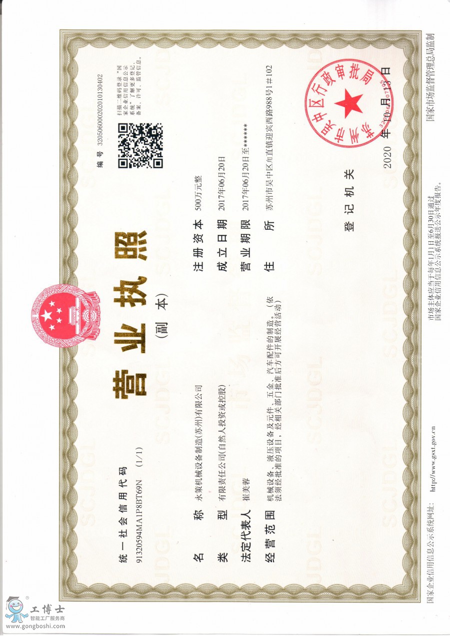 永策機械設備制造(蘇州)有限公司,證書相冊(ECM、ISO、商標、***認證、營業執照)