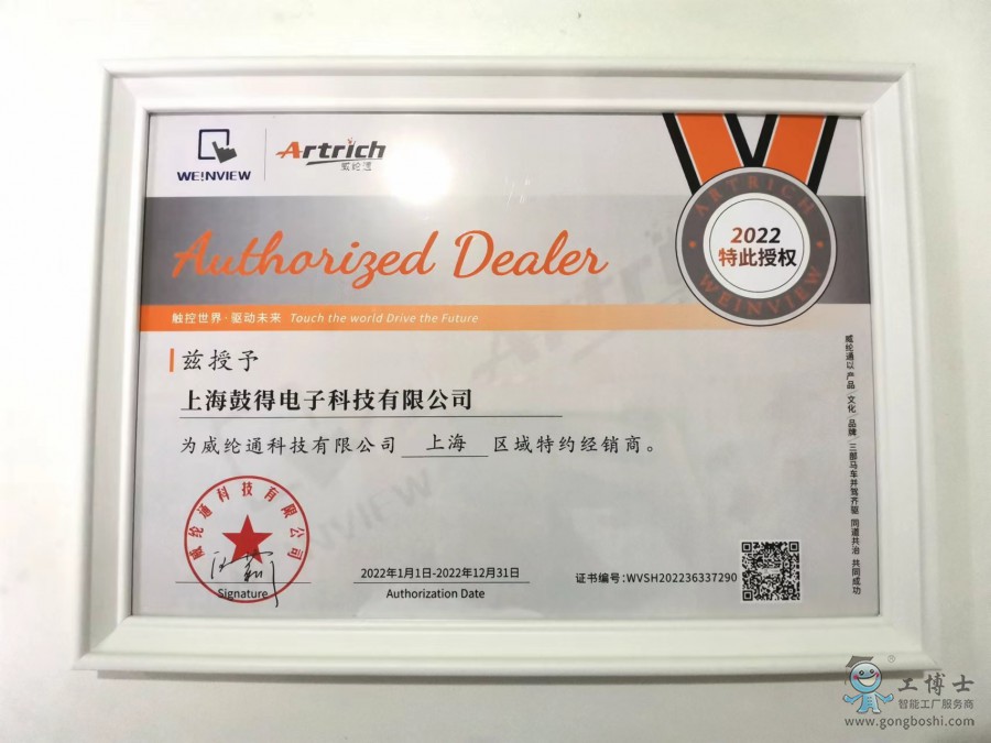 上海鼓得電子科技有限公司威綸通一級代理證書
