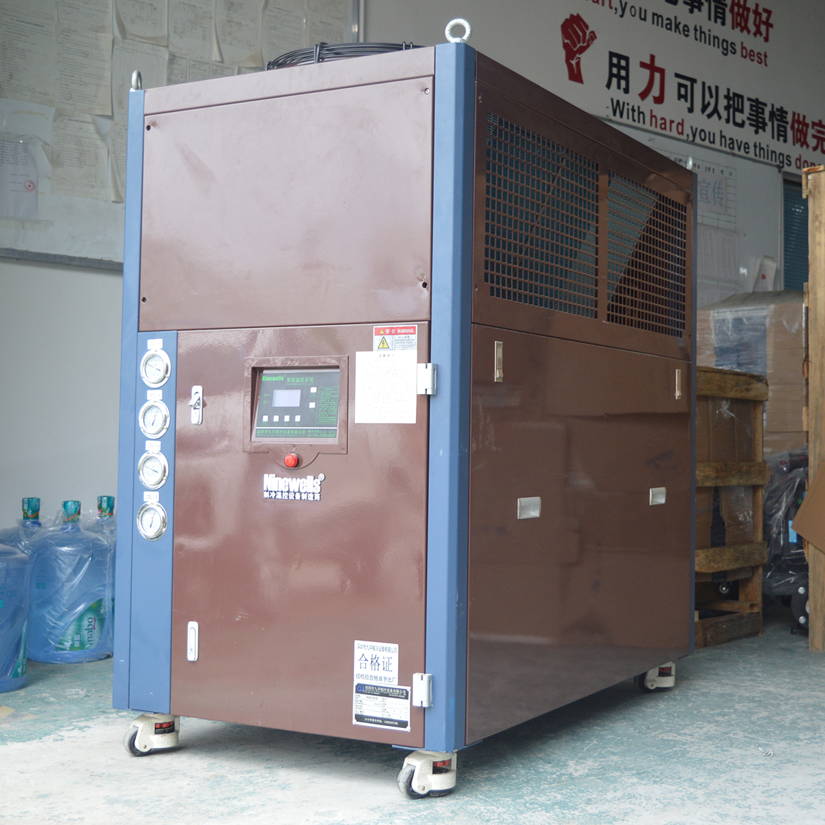 5.機組俱備八大保護功能:電源相序保護裝置、漏電保護裝置、壓縮機過載保護裝置、電圈過熱保護裝置、高低壓保護裝置、缺水保護裝置、冷凍水流保護裝置、防凍保護裝置。