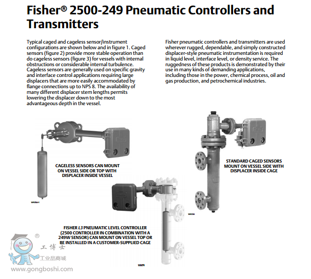 Fisher® 液位傳感器與 FIELDVUE DLC3000 系列數(shù)字液位控制器或 2500 系列控制器和變送器一起用于測量過程容器內(nèi)部的液位、分界面液位或密度/比重的變化。
