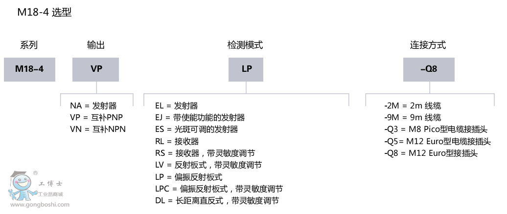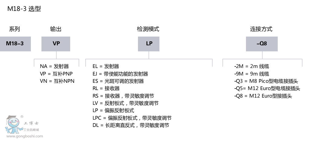 M18-3是新一代外徑18mm的金屬外殼的光電傳感