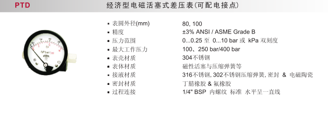 經濟型電磁活塞式差壓表(可配電接點)PTD